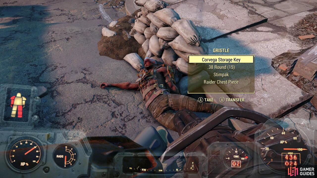 Deathclaw를 물리치면 그와 해당 지역의 모든 적을 약탈해야 합니다. 특히, Gristle이라는 Raiders 중 한 명이 Corvega Storage Key 를 가지고 있으므로 그를 찾아 약탈해야 합니다. 당신은 이제 Preston과 다시 만나야 하는 임무를 받았고, 이 퀘스트를 완료하는 데 짧은 시간이 걸리고 (바라건대) 아무 일도 없으니까 랑데뷰를 연기할 타당한 이유가 없습니다. 해당 XP를 기다릴 필요가 없습니다.