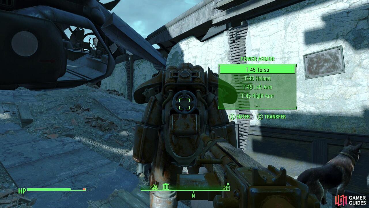 작업을 마치면 밖으로 나가서 Preston이 말한 Power Armor를 찾으십시오. 여기에서 Log - SSG Michael Daly Holotape 와 원하는 다른 물품을 집은 다음 Fusion Core를 Power Armor에 넣어야 합니다(상호작용). 다시 상호 작용하여 Power Armor에 들어간 다음 Vertibird로 향하고 Minigun 을 떼어 내십시오.