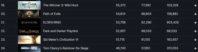 글을 쓰는 시점에서 어두컴컴한 던전을 함께 누비는 유저는 평균 5만명을 넘어섰다. 더욱이 Dark and Darker는 현재 Steam 에서 22번째로 많이 플레이 되는 게임으로 Red Dead Redemption 2 및 Tom Clancy's Rainbow Six Siege와 같은 AAA 타이틀을 뒤덮고 있습니다.
