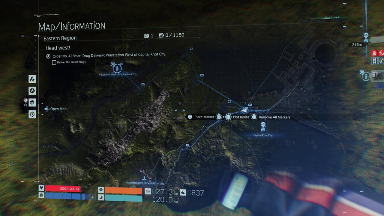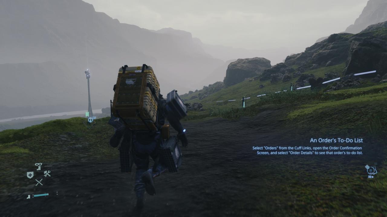 당신의 명령은 현재 위치인 Capital Knot City의 서쪽에 위치한 Waystation으로 마약을 배달하는 것입니다. 이전 임무를 위해 갔던 길(감시탑이 있는 곳)로 돌아가면 Death Stranding의 소셜 멀티플레이어 기능 중 일부가 소개됩니다. 이 시스템을 이용해보세요! 매우 중요합니다!