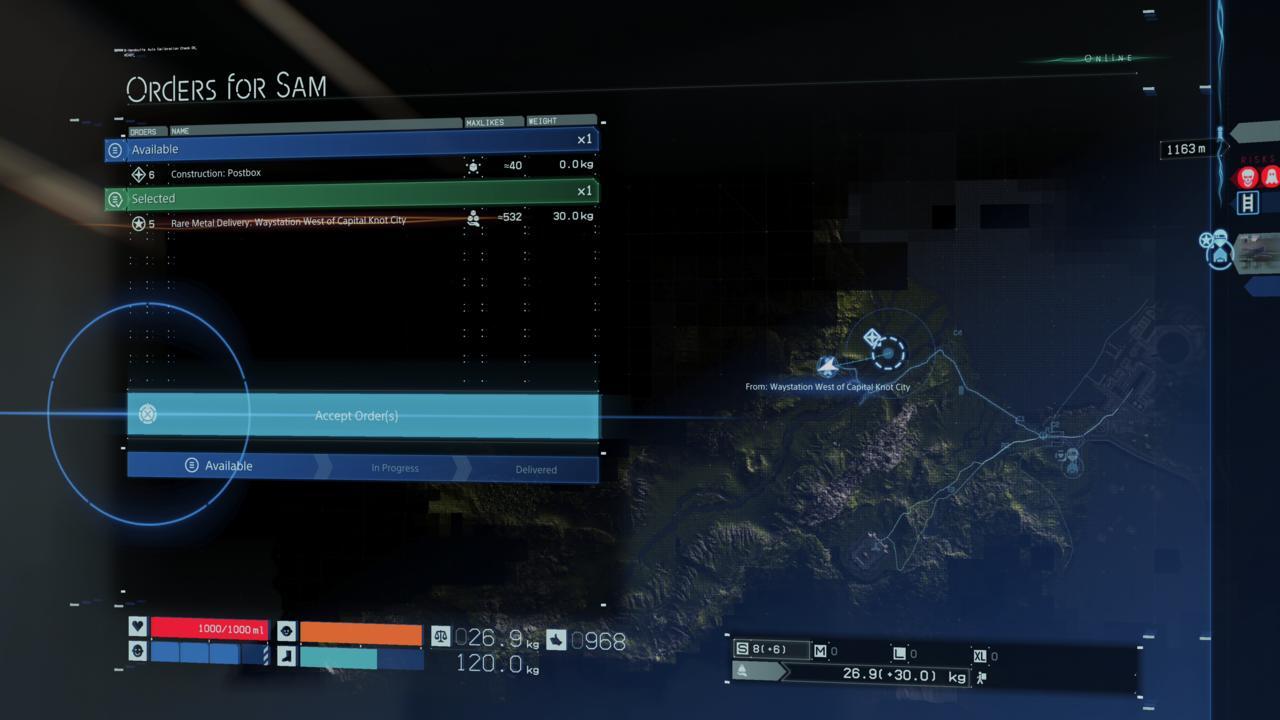 또한 배송 준비 화면이 표시되어 Sam이 직접 화물을 정리할 수 있는 기회를 얻게 됩니다. 즉, 배송해야 하는 화물 *과* 방금 얻은 장비를 모두 의미합니다. 추가 팁: