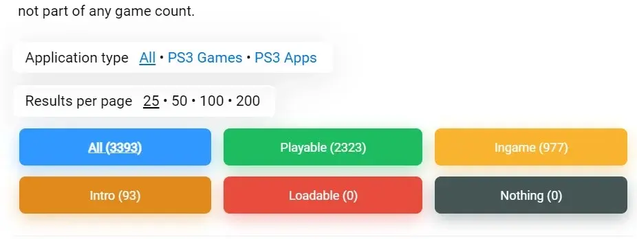 이것은 위에서 본 백분율과 일치하고 에뮬레이터의 총 게임 수를 3393 으로 가져옵니다 . 따라서 RPCS3 에뮬레이터에는 플레이어가 즐길 수 있는 3,000개 이상의 PlayStation 3 게임이 있습니다. 플레이어가 향수를 되살릴 수 있도록 에뮬레이터에서 점점 더 많은 게임을 볼 수 있기를 바랍니다.