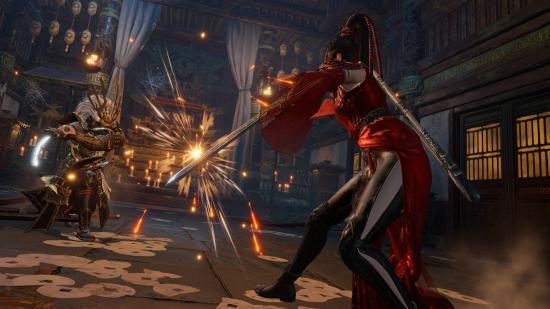 그래플링 훅 샷으로 적을 맞히면 일시적으로 기절하여 두 번의 후속 공격 중 하나에 노출됩니다. 왼쪽 마우스 버튼은 수평 스윙의 소용돌이이며 아마도 귀하의 이동 옵션일 것입니다. 하지만 상대보다 위에 있는 경우 오른쪽 마우스 버튼은 더 많은 피해를 입힐 수 있지만 맞추기는 더 어려운 수직 슬라이스입니다.