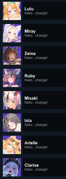 메인 메뉴를 통해 액세스할 수 있는 상점에서 구매하여 Nekos를 잠금 해제할 수 있습니다.