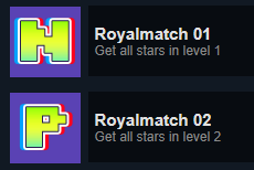 "Easymatch" 업적과 마찬가지로 각 레벨마다 "Royalmatch" 업적이 있습니다.