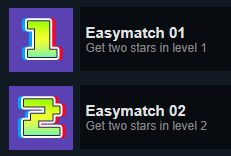 레벨에서 "Easymatch" 업적을 달성하려면 해당 레벨에서 별 2개 이상을 획득해야 합니다 .