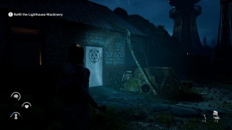 등대 건너편 저지대에서 녹색 안개를 찾아 문을 통해 건물로 들어갑니다. (들어가기 전에 가져갈 수 있습니다.프리즘 크리스탈부두 끝에 있는 빨간색 컨테이너에서, 컬티스트 몇 명이 나타날 것이라는 경고가 있습니다.) 내부에서도크하우스(주) 창턱에서. 사다리를 타고 반사경을 아래로 이동합니다.