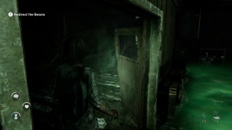 메인 룸으로 돌아가서 열린 출입구를 통과하여거실 3침대 옆 탁자에서. 계속해서 뒤쪽으로 가서 사다리를 위로 올린 다음 반사경을 움직여서 반사경이 바로 앞에 있는 것과 충돌하도록 합니다. 앞에 있는 사다리를 발로 차고 정문으로 내려갑니다.
