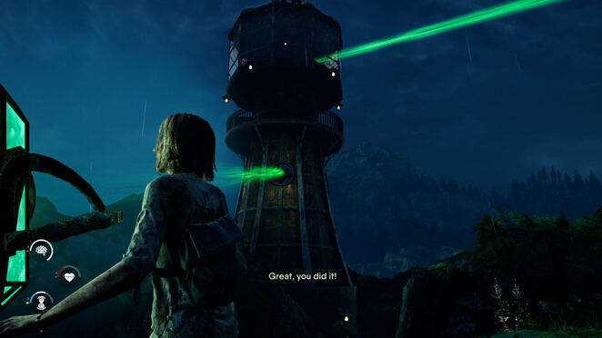 등대에 있는 Maya/Kim에게 돌아가십시오. 위층으로 올라가 머큐리를 부은 다음 핸들을 아래로 누릅니다. 등대 꼭대기로 가서 딸깍 소리가 날 때까지 비콘을 오른쪽으로 이동하면 Maya가 괜찮다고 알려줍니다.