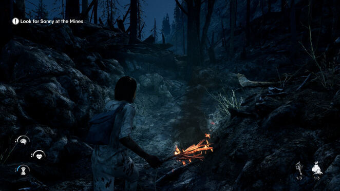 Kim과 함께 하이킹을 시작하고 메시지가 표시되면 앞에서 지상에서 Sage를 집어들 수 있습니다. 앞에서 파리가 보이면 우회전한 다음 잠긴 문(통나무 아래로 이동)에서 다시 우회전하여 꼬기를 찾으세요. 세이지 스틱을 만들어 파리를 잡는 데 사용하세요.