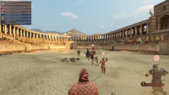 더 많은 실제 전투 경험을 위해 경기장을 최대한 많이 사용해보십시오. 화살이나 투창을 보충하기 위해 싸우는 동안 아이템을 집으세요. 적에게 마지막 일격을 가하면 적을 죽일 수 있으므로 가능한 한 쉬운 목표물을 밀렵하십시오. 연습 세션당 특정 이정표를 달성하면 소량의 골드를 받게 됩니다.