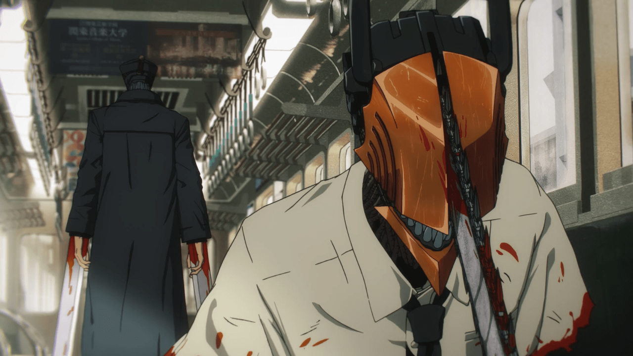 한편 파워는 적의 은신처에 있는 좀비들을 처리하느라 분주 하고 덴지는 카타나 맨이 숨어 있는 바닥에 도착한다. 그곳에서 그는 약간의 대화 후 하이브리드 형태로 변하는 인간으로 처음 그를 만납니다. 이어 두 악마 혼종은 창밖으로 뛰어내려 인근 건물 옥상에서 치열한 전투를 벌인다. 결국 그들은 서로의 관점을 이해하려고 노력하면서 기차 위에 있는 자신을 발견합니다. 그러나 Denji의 생각에 대한 개방성 덕분에 대화는 오래 지속되지 않습니다.