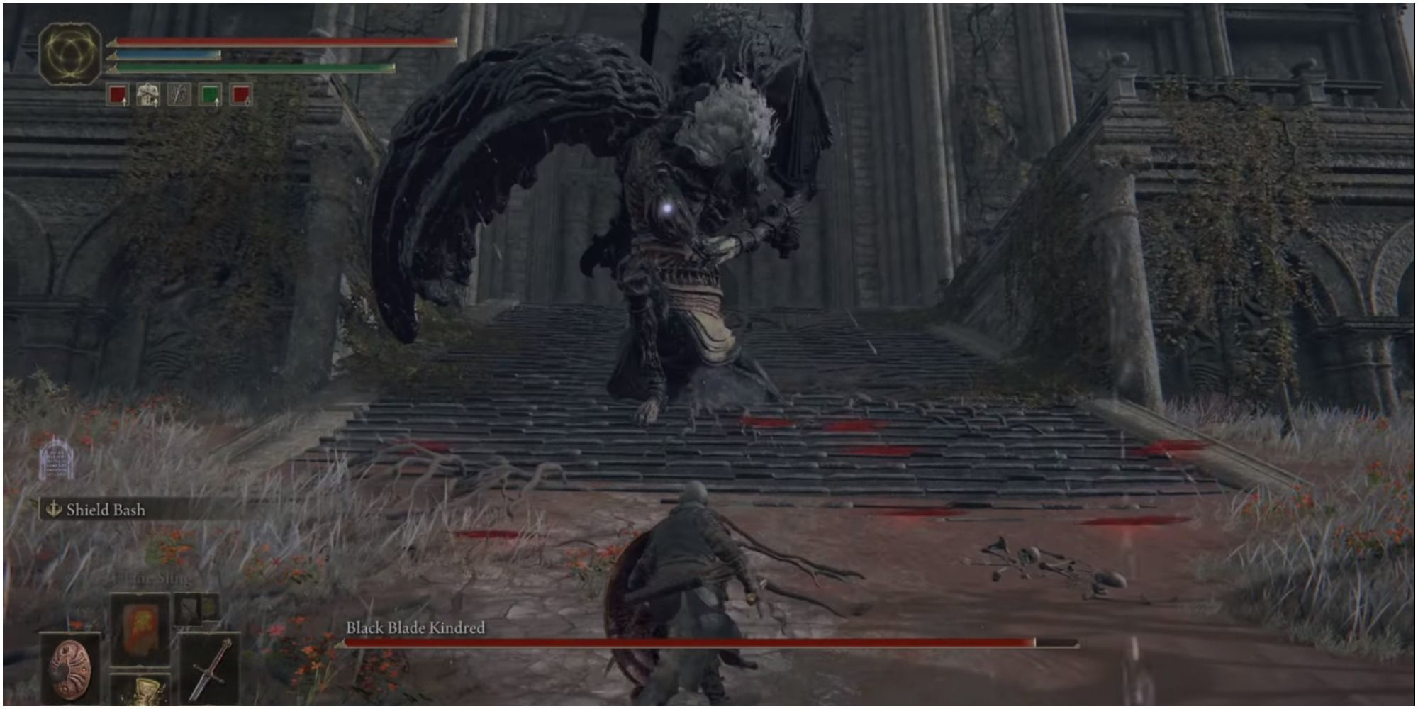 가고일의 흑검Black Blade Kindred Boss에 접근하는 플레이어