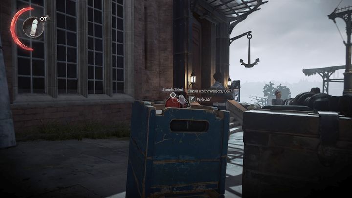 Dunwall 거리의 첫 번째 부분을 탐색한 후 정문을 통과하거나 Dunwall Courier 건물의 발코니를 사용하여 탐지되지 않은 지역을 통과할 수 있습니다. 선택한 방법에 관계없이 The Black Pony Pub 으로 가십시오 . 보트에 탑승하기 전에 픽업해야 할 귀중품을 찾을 수 있습니다.