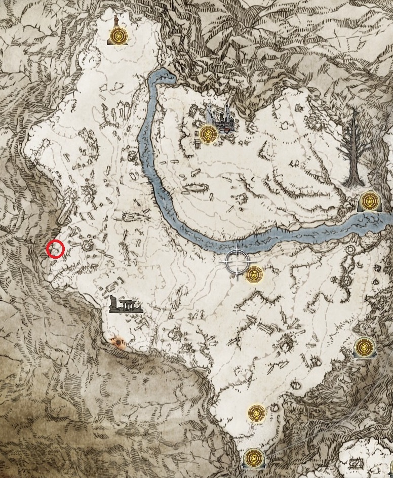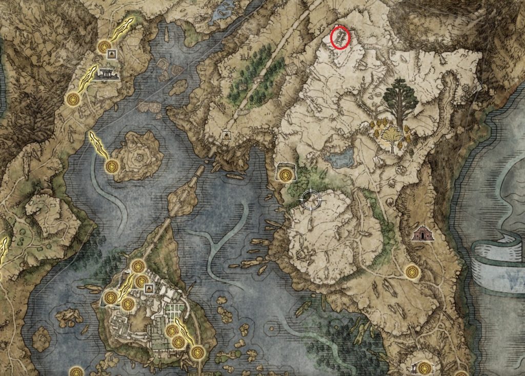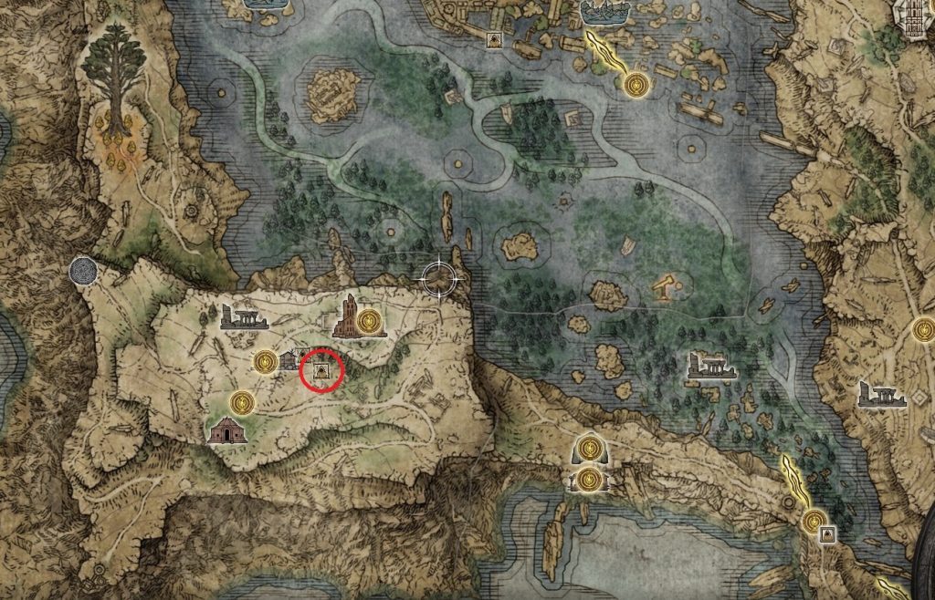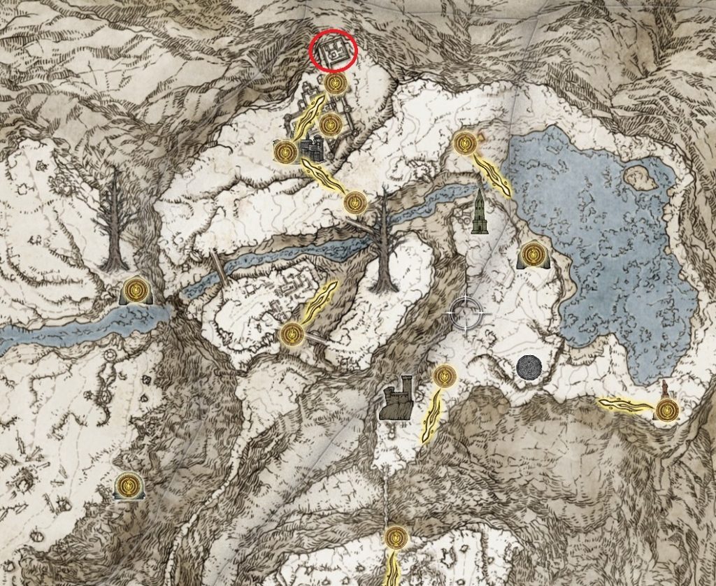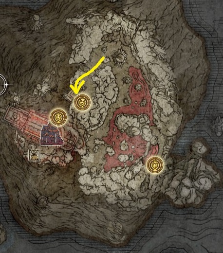 설원에 도달 하려면 Haligtree 던전으로 가는 Hidden Path를 통해 싸워야 합니다 . 그런 다음 지역의 서쪽 가장자리로 가십시오. 아래에 표시된 지점 에는 피의 사원이 있는 지역인 Mohgwyn Palace 로 연결되는 웨이게이트가 있습니다.