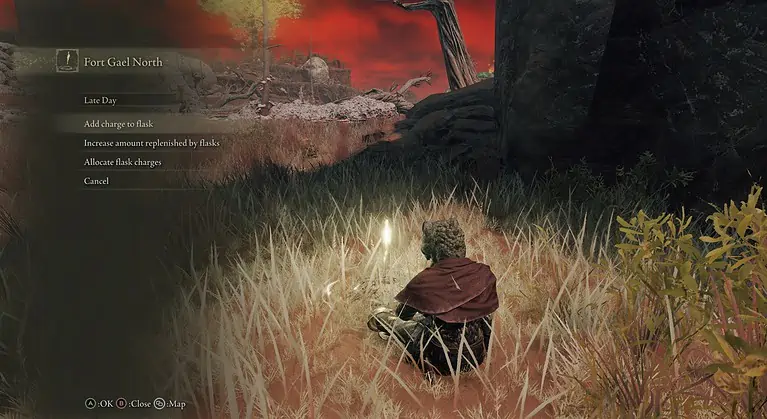 마실 수 있는 모금의 수는 한정되어 있지만 Lost Grace에 앉으면 완전히 자동으로 보충되지만 보스가 아닌 모든 적도 다시 생성됩니다. Lost Grace에서 휴식을 취하지 않고 야생에서 적과 싸울 수 있는 시간은 거의 전적으로 플라스크에 의해 결정됩니다.