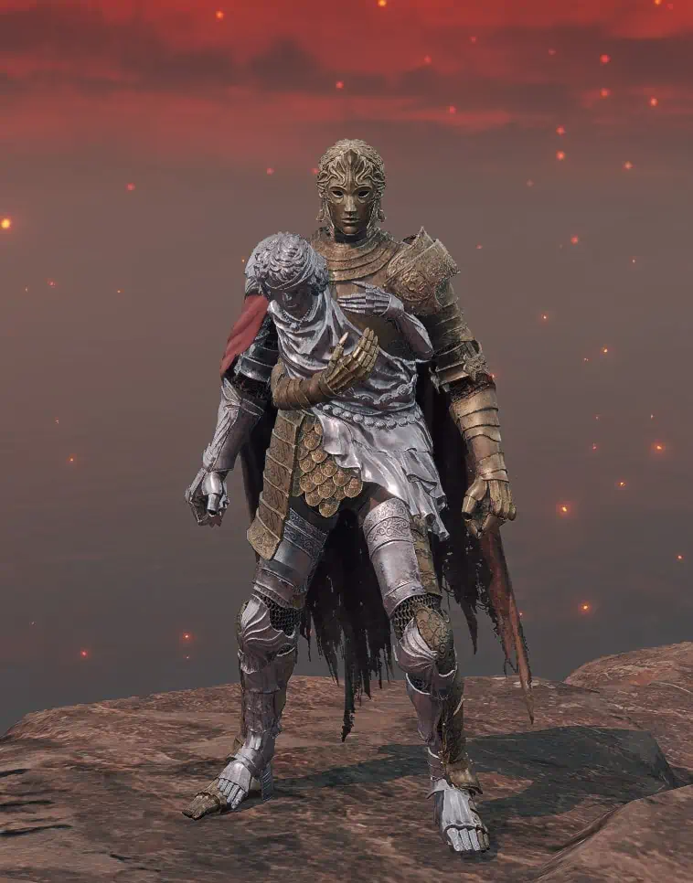 Twinned Knight 갑옷 세트는 D와 Fia의 퀘스트 라인의 일부로 두 번 제공됩니다(퀘스트를 진행하려면 Fia를 주기적으로 포옹하십시오). D에게서 처음으로 갑옷을 얻으면 Nokron에 있는 쌍둥이 D에게 가져가서 Fia의 퀘스트라인을 계속 진행하면 Prince에서 죽음의 왕자의 수선 룬을 받은 후 마지막에 갑옷을 되찾을 기회가 있습니다. Deeproot Depths의 죽음의 왕좌.