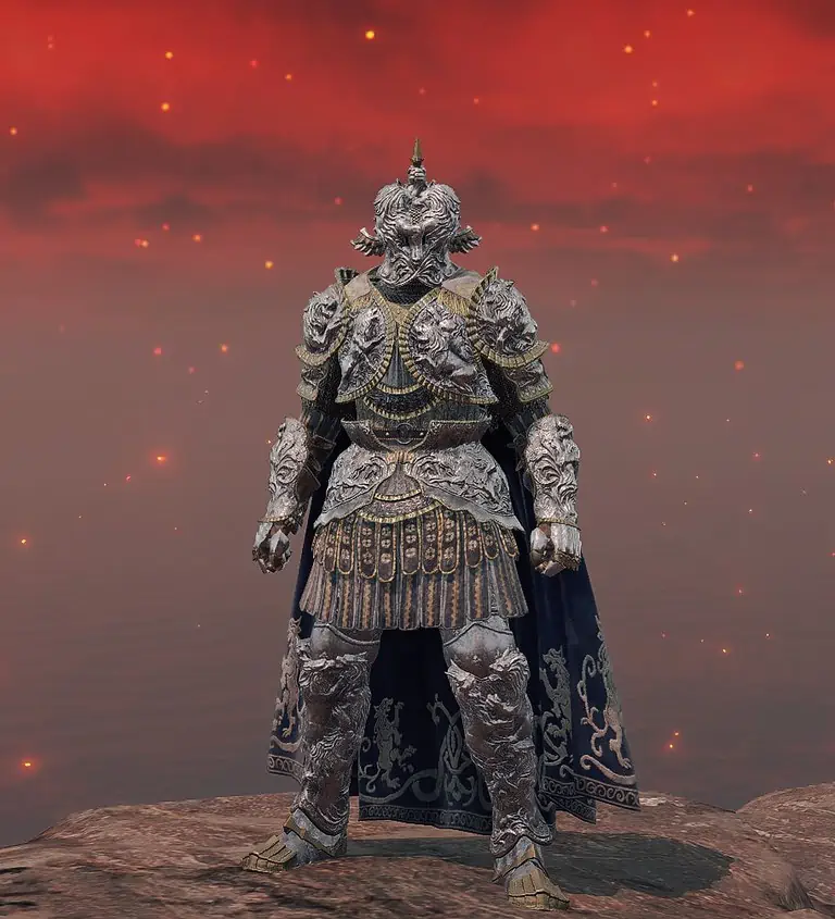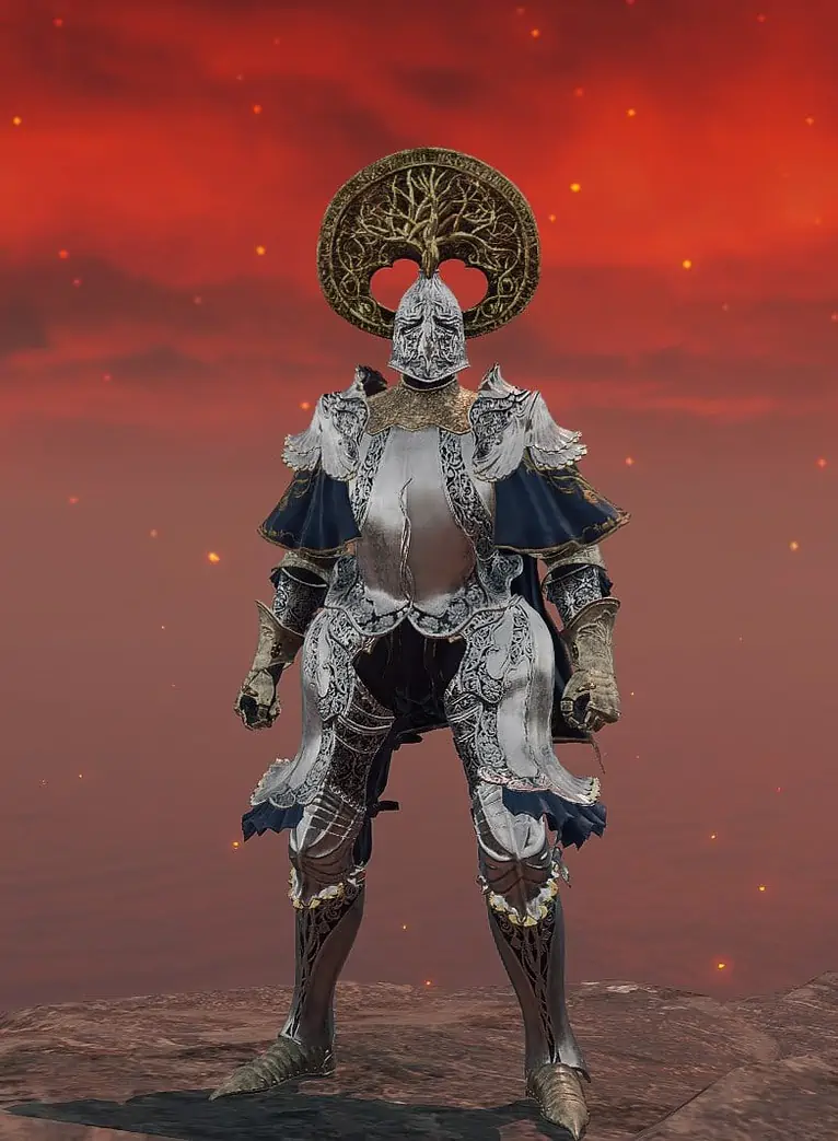 Blaidd의 갑옷 세트는 Ranni의 Rise 외부에서 적대적인 Ranni의 퀘스트 가 끝날 때 그를 물리 친 후 얻을 수 있습니다 . 그가 패배하면 즉시 가슴, 손, 다리를 받지만 Lost Grace에서 해당 지역을 재장전하고 Seluvis's Rise로 가서 외벽을 따라 시체에 있는 헬멧을 가져와야 합니다. .