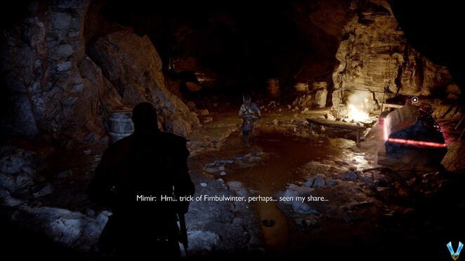 Atreus를 계속 따라가면 마침내 집으로 돌아갑니다. 실제로 여기에서 우리를 기다리고 있는 Sindri를 발견하게 될 것입니다. 우리는 이제 오딘이 우리를 지켜보고 있다는 것을 알기 때문에 이곳을 떠나야 합니다.
