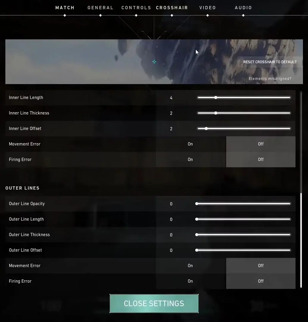 Valorant는 십자선을 사용자 지정할 수 있는 다양한 설정을 제공합니다.