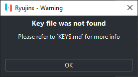 - Ryujinx 파일 을 추출한 위치로 이동하여 Ryujinx.exe 를 두 번 클릭합니다 . 그러면 에뮬레이터가 시작되고 다음 메시지가 표시됩니다(걱정하지 마세요. 정상입니다!).