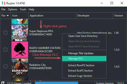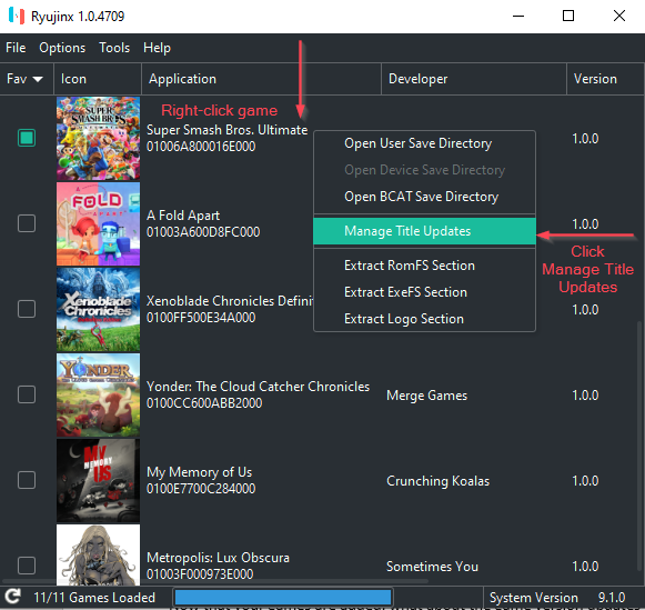 이제 게임이 추가되었으므로 버그 수정, 새 콘텐츠 등 다양한 이유로 게임을 업데이트하고 싶을 수 있습니다. Ryujinx 에는 플레이하려는 게임 버전을 관리하는 기능이 내장되어 있습니다.