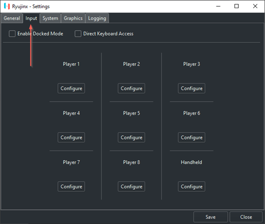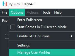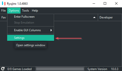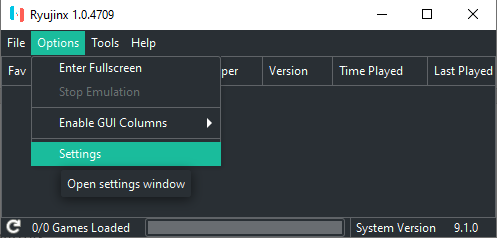 - Ryujinx를 연 상태에서 옵션 > 설정 으로 이동합니다 .