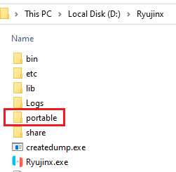 - Ryujinx 프로그램 기본 디렉토리에 "portable"이라는 하위 폴더를 만듭니다. 이것은 자동으로 휴대용 모드를 활성화하고 시스템 폴더 콘텐츠(키, 펌웨어, PPTC/쉐이더 캐시 등)에 대해 이 "휴대용" 폴더를 활용합니다.