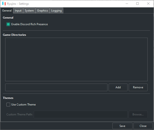 Ryujinx가 열린 상태 에서 옵션 > 설정 을 클릭 합니다 . 일반 탭 으로 바로 이동합니다 .