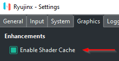 - Graphics 탭으로 이동하여 "Enable Shader Cache"라고 표시된 상자를 선택 취소하여 셰이더 캐시를 비활성화합니다.