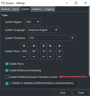 Ryujinx는 기본적으로 사전 최적화되어 있습니다. 이 가이드에 특정 메뉴 옵션이 언급되지 않은 경우 무시해야 하며 Ryujinx 직원이 직접 지시하지 않는 한 변경해서는 안 됩니다.