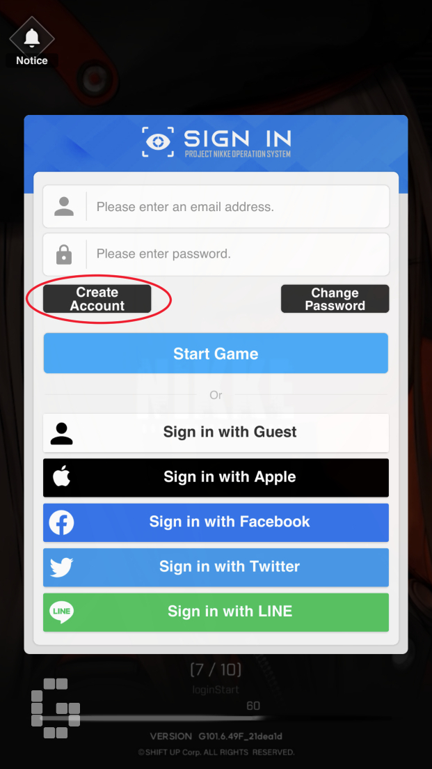 Nikke에는 게스트 계정을 만들 수 있는 옵션이 있지만 게임을 제거하지 않는 한 해당 계정을 삭제할 수 없으므로 가장 좋은 옵션은 소금에 절인 이메일을 사용하는 것입니다.
