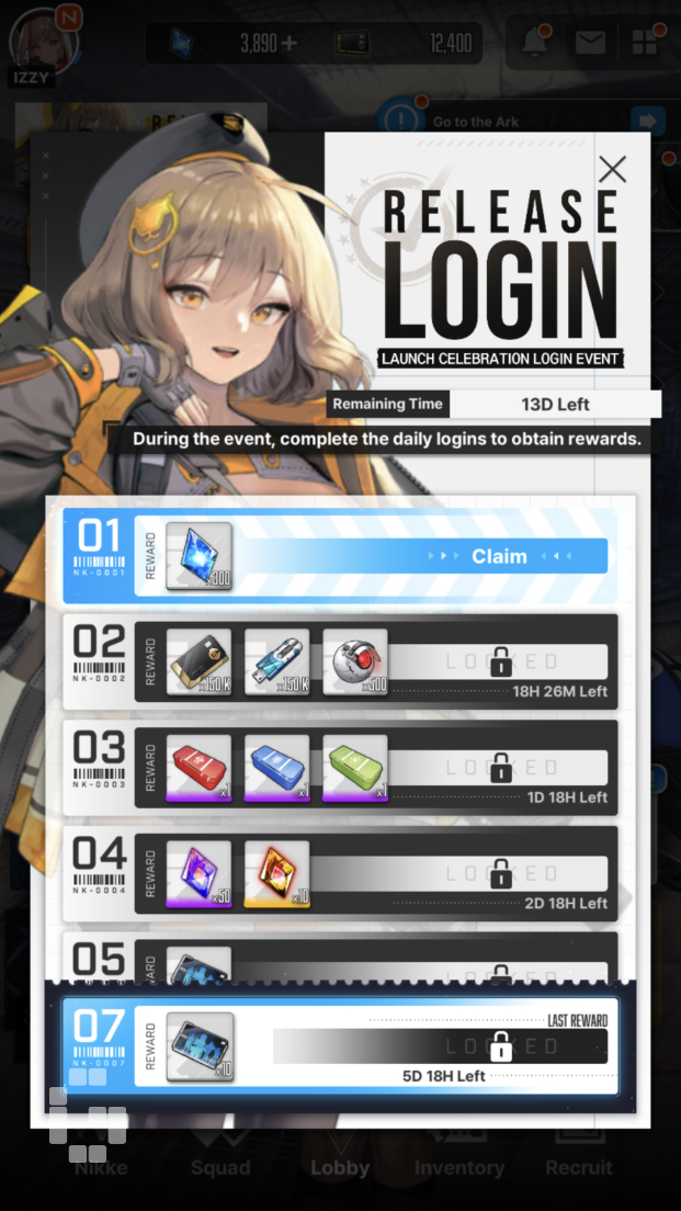 - 프리미엄 통화에 대한 Launch 로그인 보상을 요청한 다음 Recruit 페이지로 진행할 수 있습니다.
