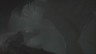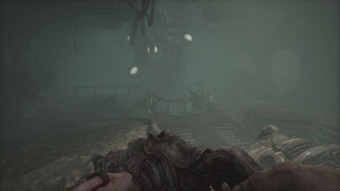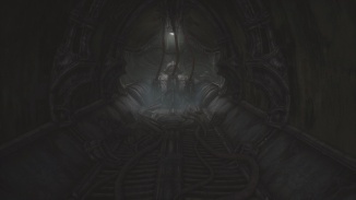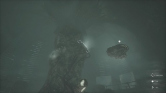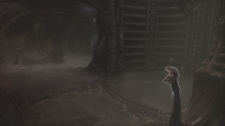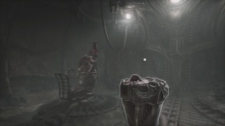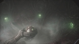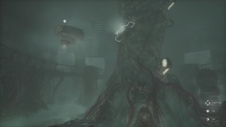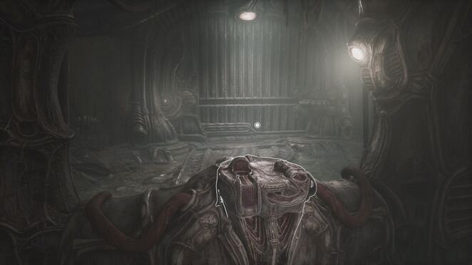 이전 구역에서 위쪽으로 리프트를 탄 후 길을 따라가면 중앙에 시체로 덮인 대형 기계가 있는 크고 원형의 방에 도착합니다. 왼쪽과 오른쪽으로 이어지는 복도가 있습니다.