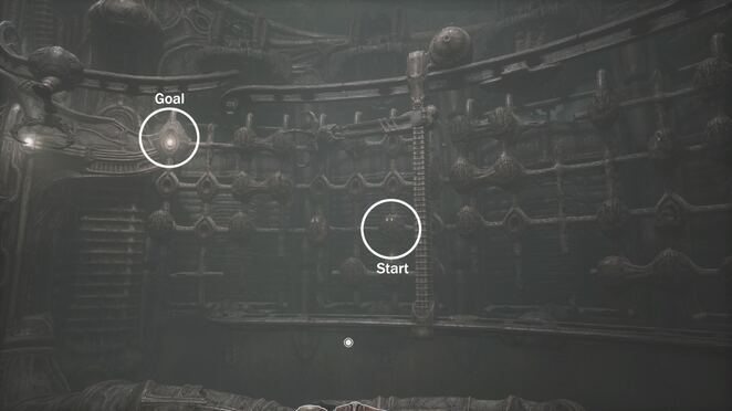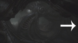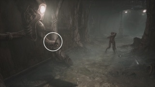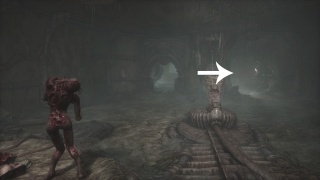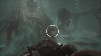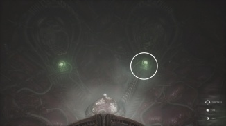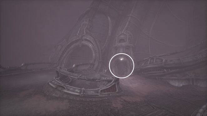 첫 번째 받침대에서 왼쪽으로 돌아 입구 지점으로 돌아가는 터널에 도달할 때까지 다육질의 기둥을 통과하는 길을 따라가세요. 이 직전에 빛나는 반점과 그 앞에 콘솔이 있는 또 다른 크고 살이 많은 성장을 찾을 수 있습니다. 이것과 상호 작용하려면 이전에 주운 무기를 사용해야 합니다.