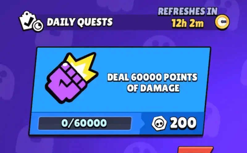 우리는 모든 브롤러와 함께 어떤 모드에서든 특정 양의 피해를 입히거나 특정 양의 건강을 치유하는 새로운 일반 퀘스트를 받게 될 것입니다. 이 퀘스트는 전환하거나 대체할 수 없으며, 다른 퀘스트를 이 퀘스트에 다시 추가할 수 없습니다.