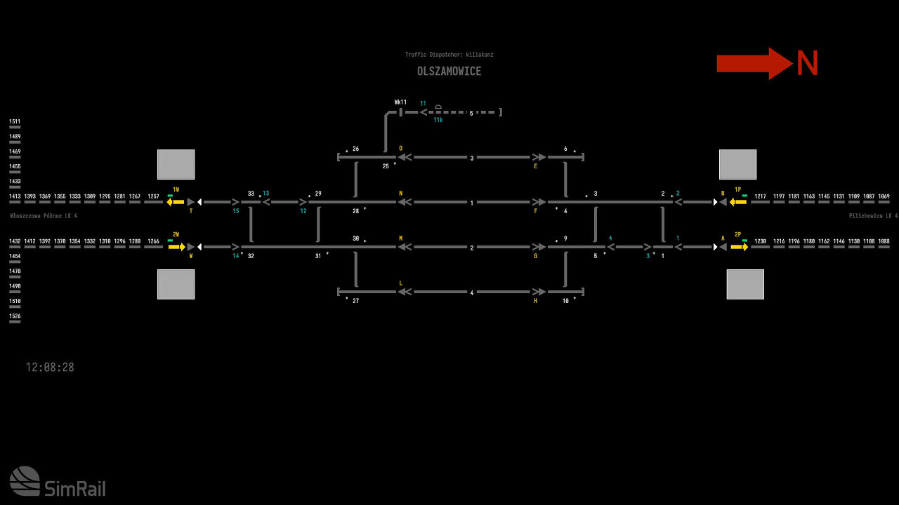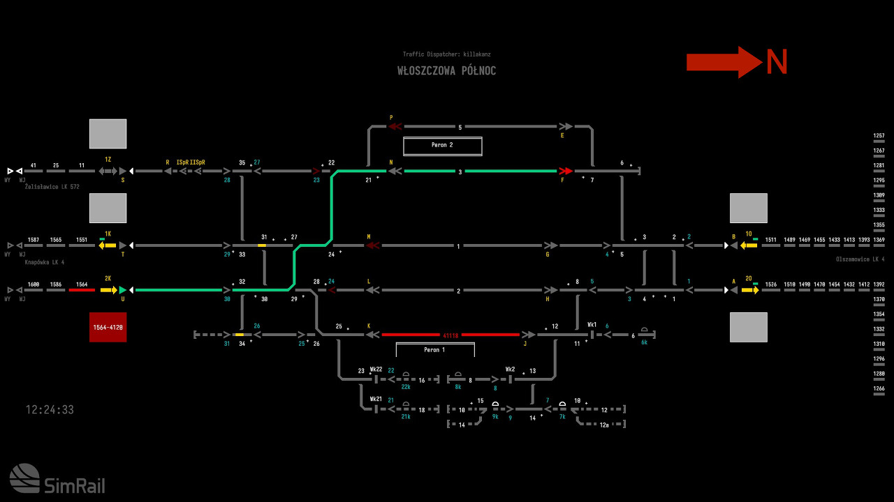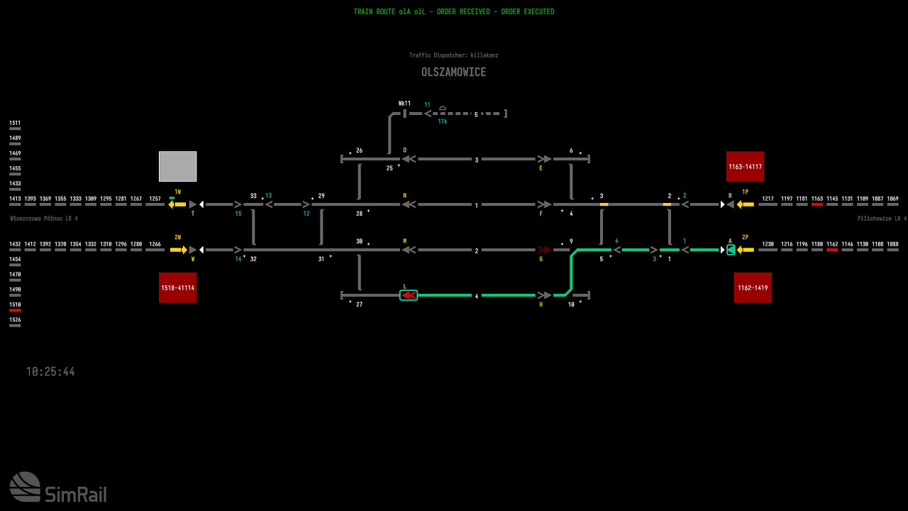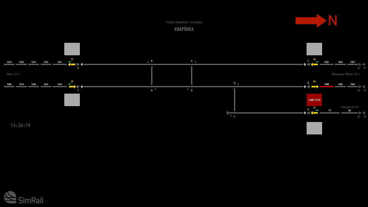 기차를 보내는 경우 이웃 상자(Sosn.Poludniowy)에 전화를 걸어 "Is the path for train … on track … clear?"라는 텍스트 옵션을 사용하여 기차 번호와 트랙 번호를 입력해야 합니다. 옆에 있는 상자는 경로가 깨끗하다고 응답해야 합니다.