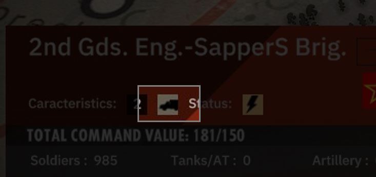 - 전술 유닛의 전투 값. 이 경우 탱크 아이콘으로 표시되는 Armor Combat이며 값은 0.3입니다.