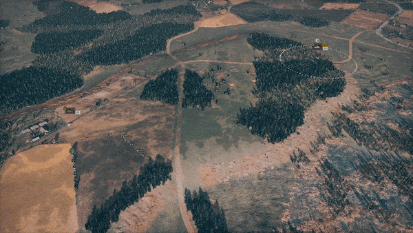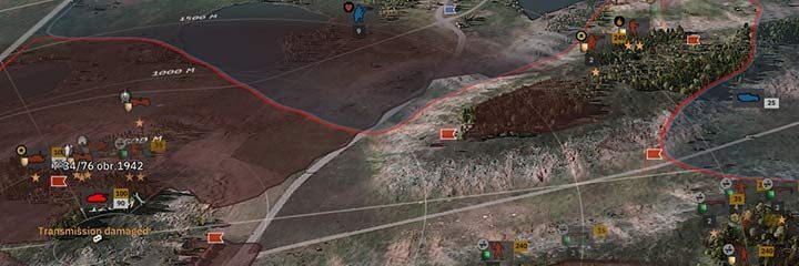 주변 환경 확인: 시선 도구의 원 하나는 250미터입니다. 흰색 영역은 장치가 명확하게 볼 수 없는 영역입니다. Steel Division 2에서는 고도도 고려됩니다. 이것을 사용하여 유닛의 행동을 신중하게 계획하십시오.