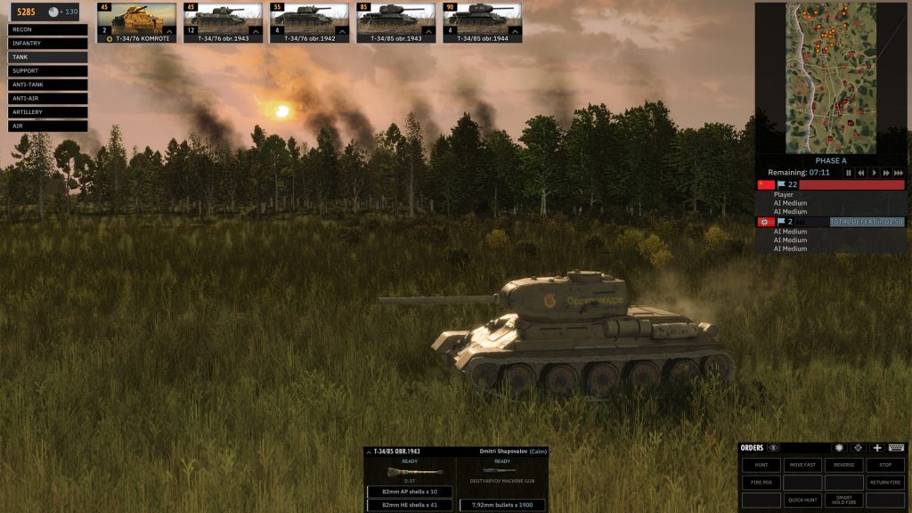 "C" 키를 사용하여 장치의 시야를 확인할 수 있습니다. "G" 키를 누르면 탱크가 후진하여 적군을 향해 더욱 장갑을 낀 전선을 돌릴 수 있습니다. 대전차 유닛은 측면을 보호하고 너무 빨리, 너무 멀리 이동하는 무모한 탱크를 매복하는 데 적합합니다.