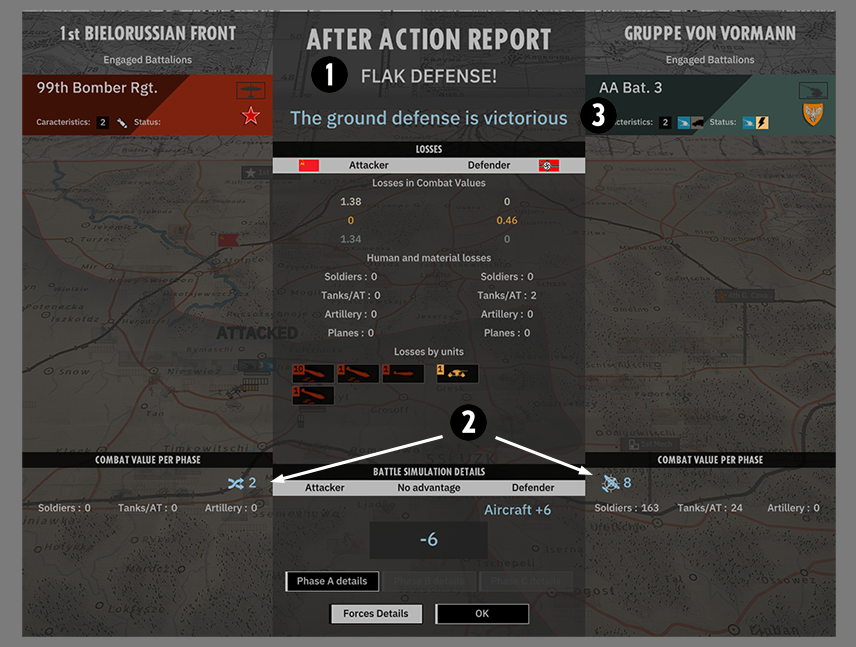 항공기나 오프맵 포병 유닛을 배치 하면 오프맵 유닛 패널의 화면 왼쪽 하단에 나타납니다 . 맵 외부 유닛을 배치하려면 이 인터페이스에서 해당 이름을 클릭하고 이동할 위치를 마우스 오른쪽 버튼으로 클릭합니다. 오프맵 유닛 패널에는 모든 오프맵 유닛이 나열되고 해당 상태가 표시됩니다. 천천히 감소하는 게이지는 연료 제한을 나타냅니다. 비행기가 비면 비행기는 다시 배치될 준비가 되기 전에 일정 시간 동안 대피하여 연료를 보급하고 재무장합니다.