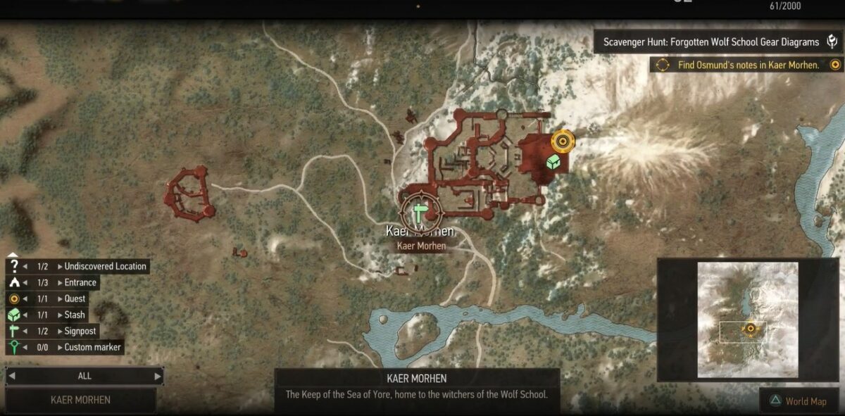 이 퀘스트는 매우 간단합니다. Kaer Morhen으로 가서 퀘스트 마커를 따라 위 지도에 표시된 위치로 들어가기만 하면 됩니다. 거기에서 왼쪽에 책꽂이와 당신을 데려다 줄 사다리가 보일 것입니다.