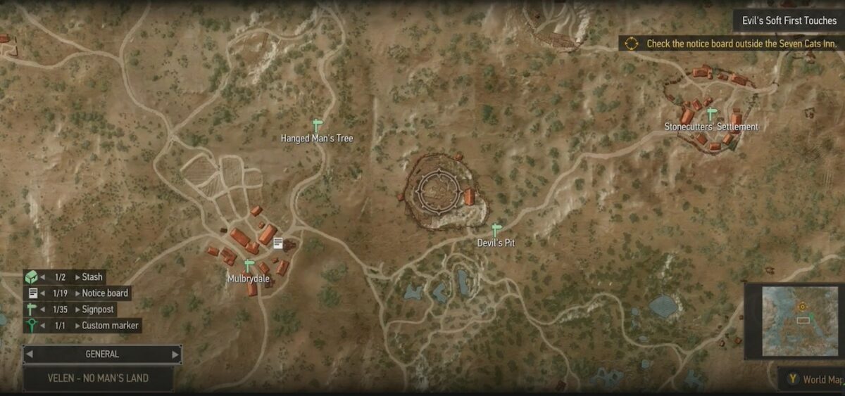 이 퀘스트를 받으려면 Devil's Pit 에 있는 Eternal Fire Priest에게 가십시오 . 매달린 남자의 나무 표지판 근처에서 그를 찾을 수 있습니다. 위의 지도도 빠르게 도달하는 데 도움이 됩니다. The Witcher 3에서 이 퀘스트를 받으려면 Priest와 대화를 시작하세요.