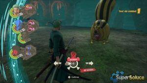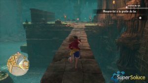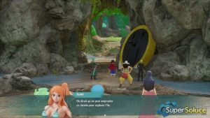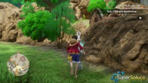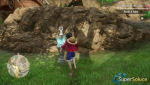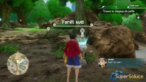 해변으로 돌아온 그룹은 골격을 잃은 마지막 승무원 브룩을 찾습니다. 그의 유명한 밀짚모자를 찾기로 결심한 Luffy는 사우전드 써니의 닻의 방향을 잡습니다( picture1 ). 조로의 강력한 개입으로 통로가 비워 지고 ( 그림 2 ) 남쪽 숲 입구( 그림 3 ) 에서 진행 상황을 저장할 수 있습니다 .