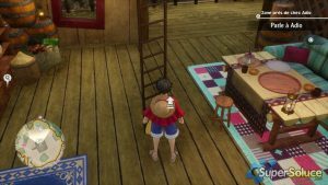 신비한 섬의 위협에 맞서고 싶다면 큐브를 찾아 힘을 되찾아야 합니다. Adio는 먼저 식사를 위해 그의 집에 들어가도록 제안합니다. 집 앞 세이브 포인트( picture6 )에서 진행 상황을 저장한 후 계단( picture7 )을 올라 갑니다 . 식당에 들어가 컷신( 그림 8)을 시작하고 원피스 오디세이 워크스루 의 이 부분을 종료합니다 .