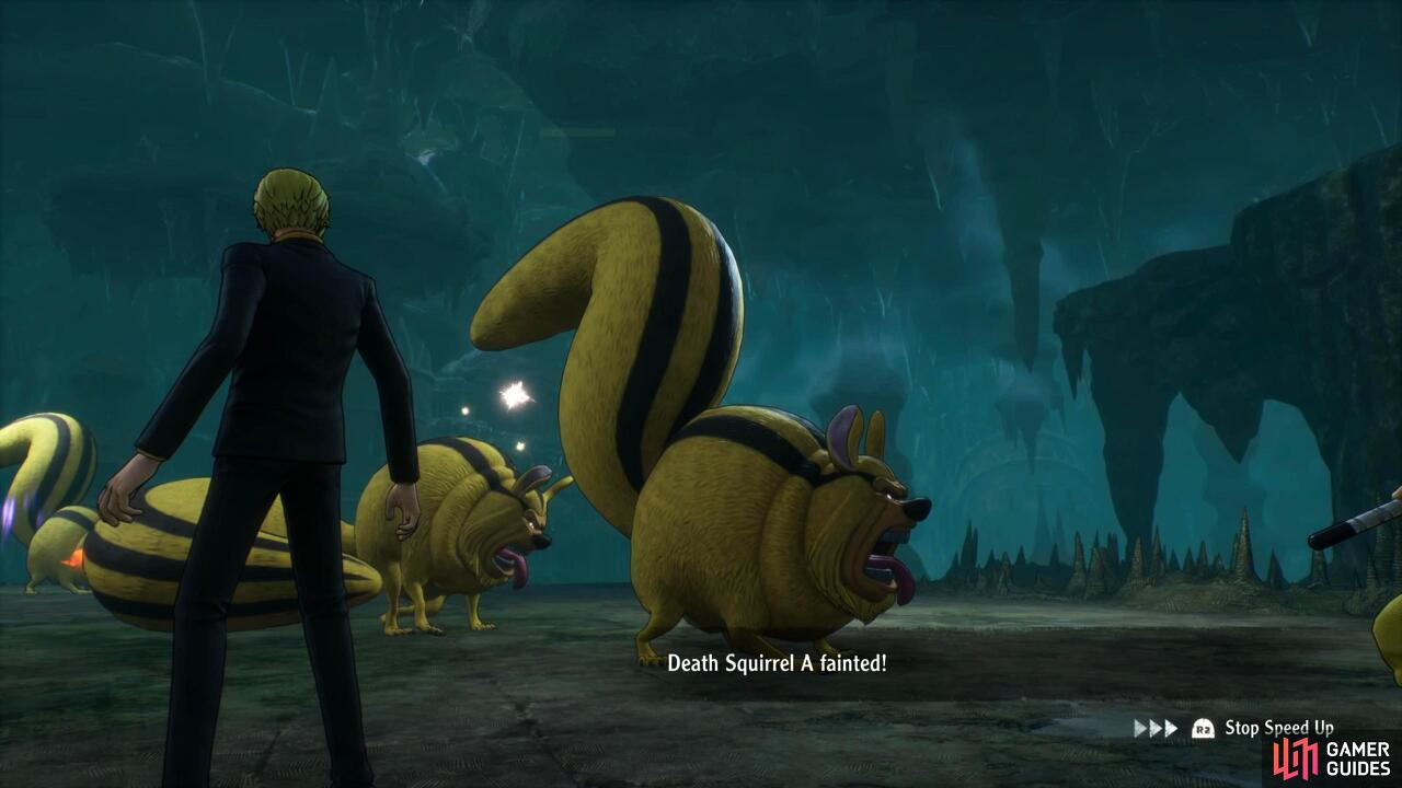 - Usopp : Lake Shore Cave 저장 지점으로 돌아가기 위해 남쪽 경로를 따라가면 마지막 드롭다운이 있습니다. 아래로 떨어지기 전에 잡을 수 있는 큐브가 있습니다. 난간을 떨어뜨리기 전에 Luffy를 사용하여 손을 뻗어 잡으십시오. 그것을 놓치면 그것에 도달하기 위해 다시 돌아가는 경로를 따라야 함을 의미합니다.