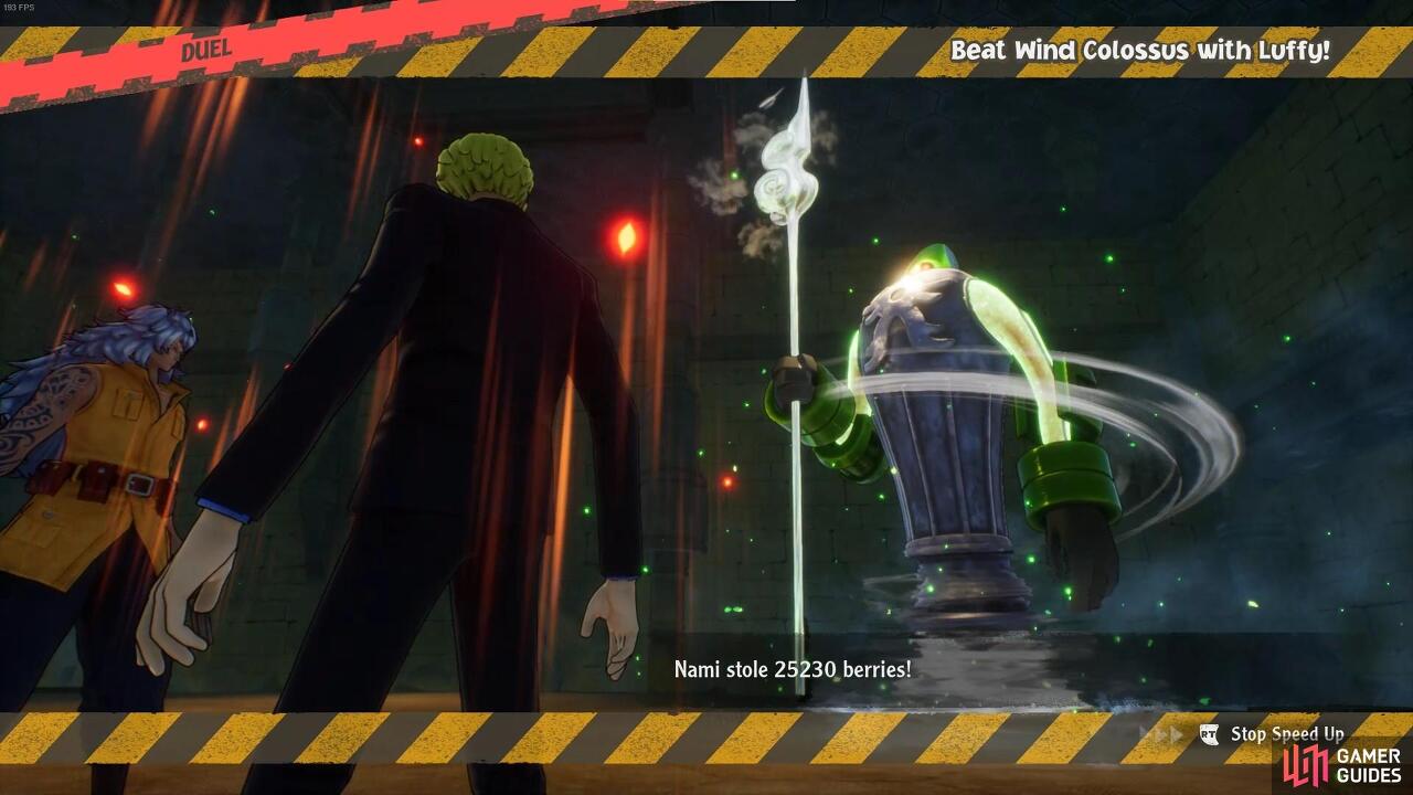 Nami로 돌아다니는 것은 One Piece Odyessy에서 돈을 버는 한 가지 방법입니다. (왼쪽), 크고 나쁜 적에게 훔치기 스킬을 사용하면 One Piece Odyessy에서 상당한 금액의 보상을 받을 수 있습니다. (오른쪽)