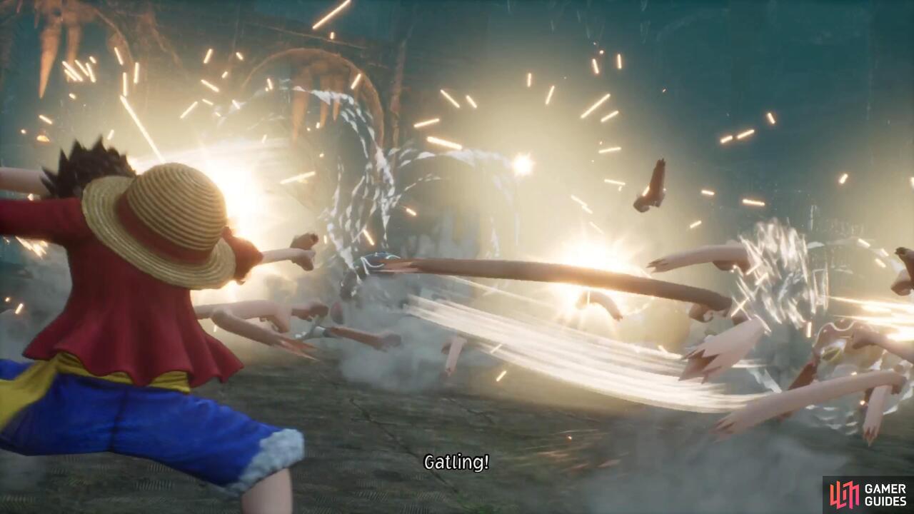 - Luffy 2 : 등반을 마치고 돌기둥과 기둥을 잡고 단단한 땅으로 돌아오면 사다리를 타고 조로와 함께 금속문을 부수십시오. 게이트를 통과하면 Luffy의 잡기 기능을 사용하여 잡을 수 있는 플로팅 큐브를 찾을 수 있습니다.