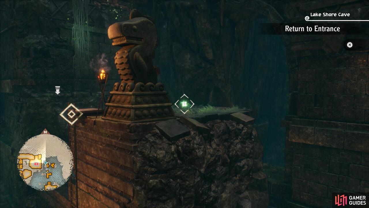 다음 두 개의 큐브는 폐허의 시작 부분에 숨겨져 있기 때문에 쉽게 놓칠 수 있습니다. 동굴의 세이브 포인트까지 내려가는 길을 따라 위를 올려다보면 붙잡을 수 있는 빛나는 석순을 찾을 수 있습니다. 그들과 씨름하면 동굴의 다른 절벽 가장자리, 석조 아치 및 위의 통로로 이동합니다. 또한 많은 아이템 픽업과 이러한 경로를 탐색하여 숨겨진 상자에 도달할 수 있는 방법이 있습니다. 그러나 하나만 두 개의 큐브 위치로 이어집니다.