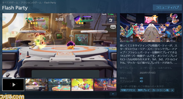 조기 액세스가 실시되고 있던 기본 플레이 무료 난투계 격투 게임 ' 플래시 파티 '가 오늘 2023년 1월 10일(화)부터 정식으로 발매된다. 벌써 전달되고 있는 iOS판에 더해, 오늘부터 Google Play와, Steam에서도 전달이 개시되었다.